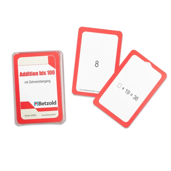Dette kortspil hjælper børn med at lære addition op til 100 med to-cifret overgang. Det består af 48 dobbeltsidige kort med opgaver på forsiden og løsninger på bagsiden, hvilket gør det nemt og hurtigt at øve færdighederne og kontrollere svarene.