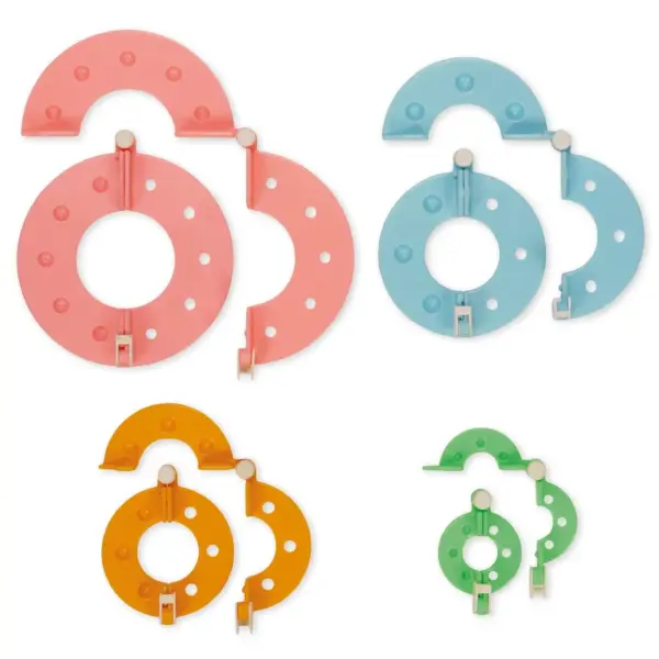 Forvandl garn til farverige pomponer med vores brugervenlige Pompon Maker! Dette sæt indeholder 4 to-delte Pompon Maker, der giver dig mulighed for at skabe pomponer i fire forskellige størrelser, fra 3,5 cm til 9 cm i diameter. Perfekt til alle dine kreative projekter, fra hjemmedekoration til tilbehør.